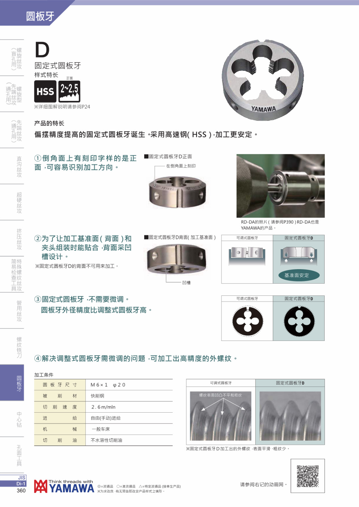 * 偏擺精度提高的固定式圓板牙。采用高速鋼加工更安定。
