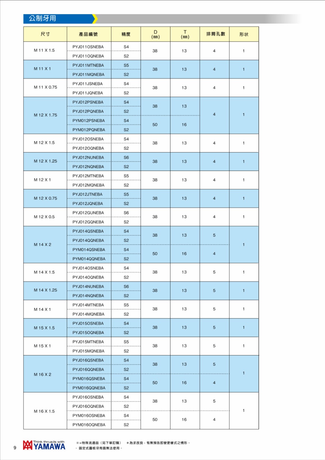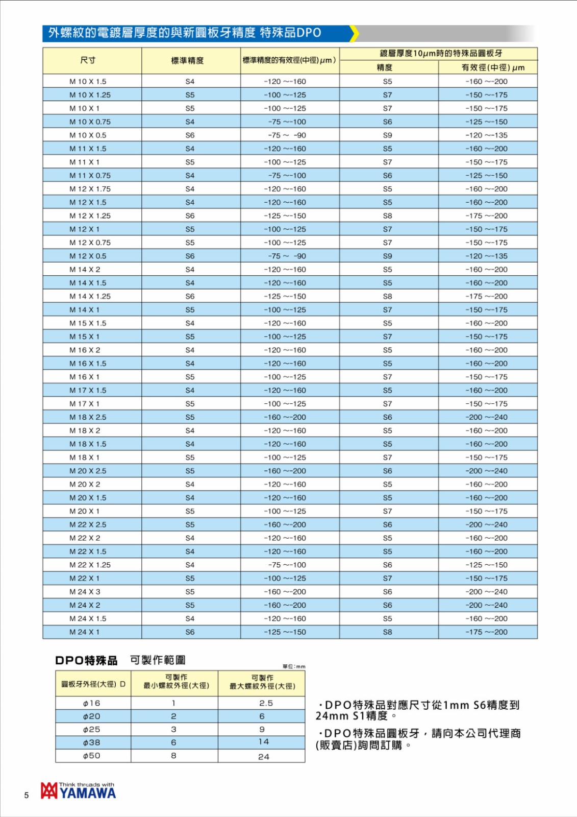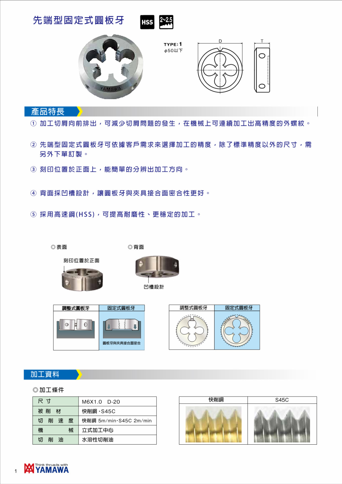 * 先端型固定式圓板牙可依據(jù)客戶需求來(lái)選擇加工的精度,除了標(biāo)準(zhǔn)精度以外的尺寸,需另外下單定制。