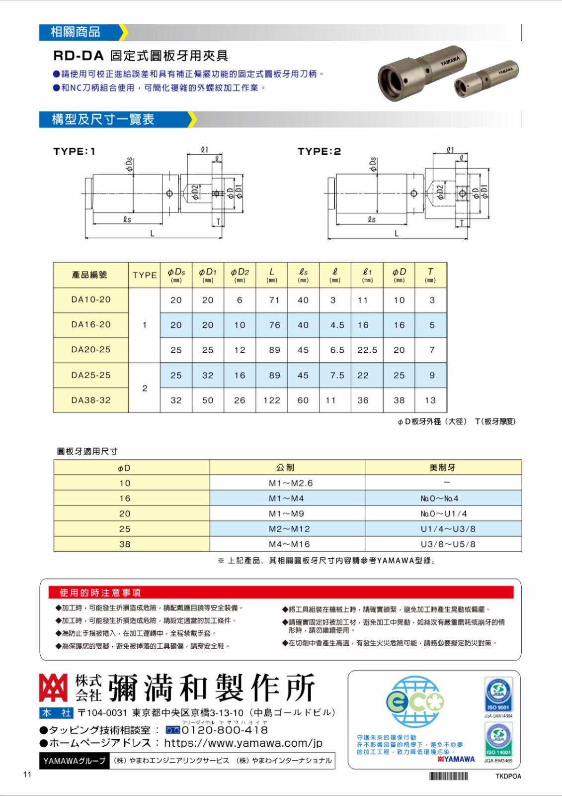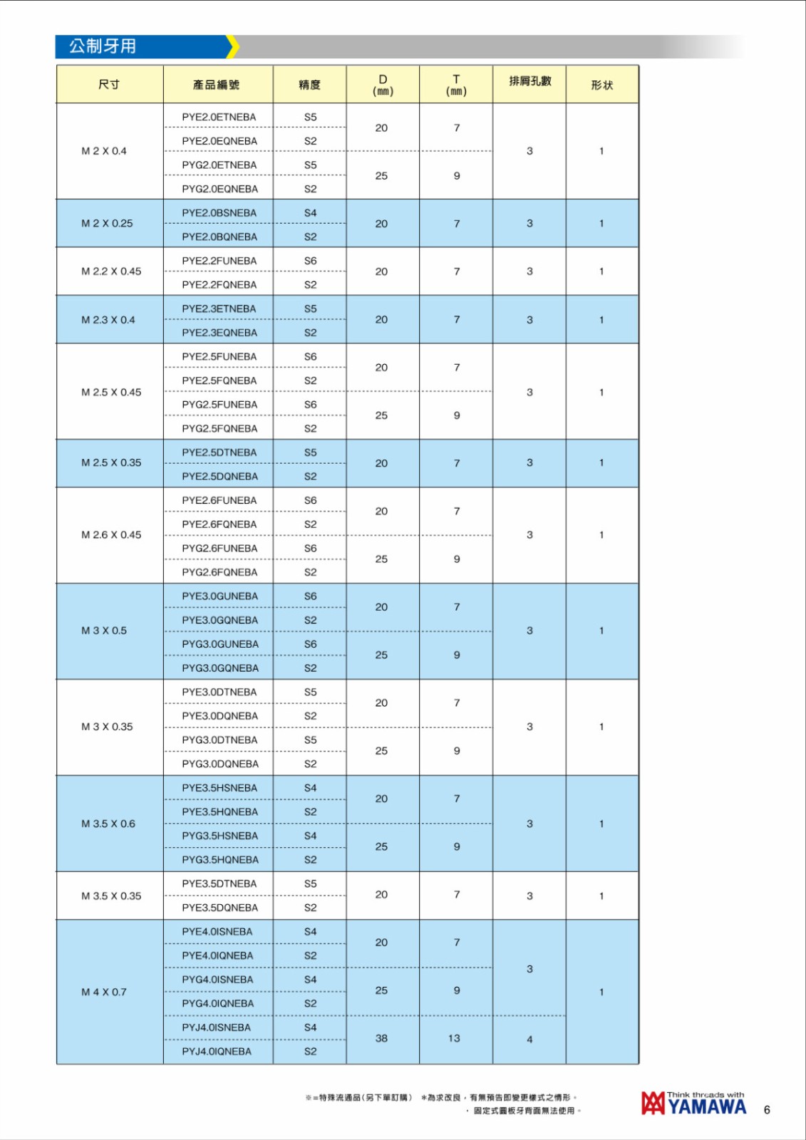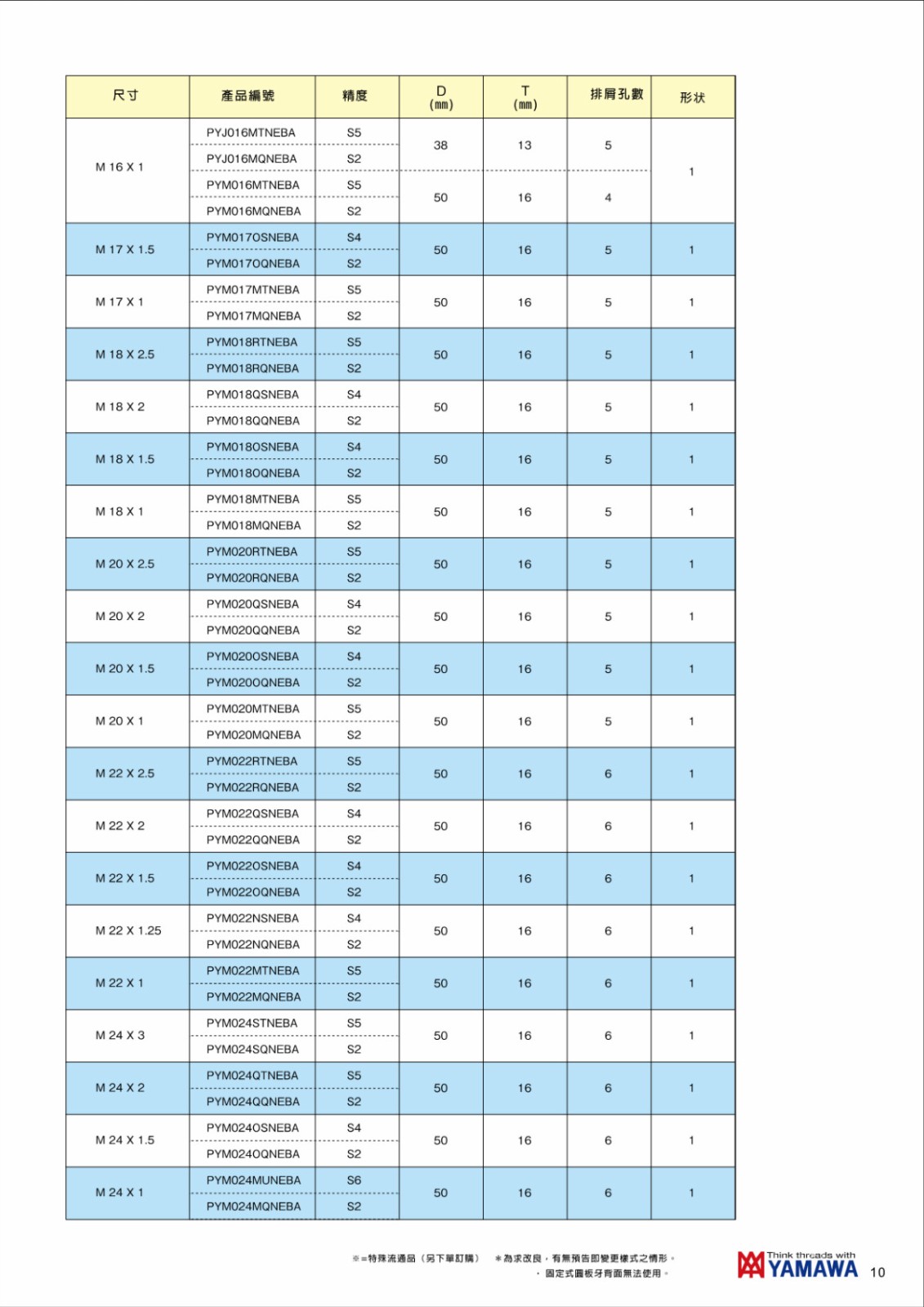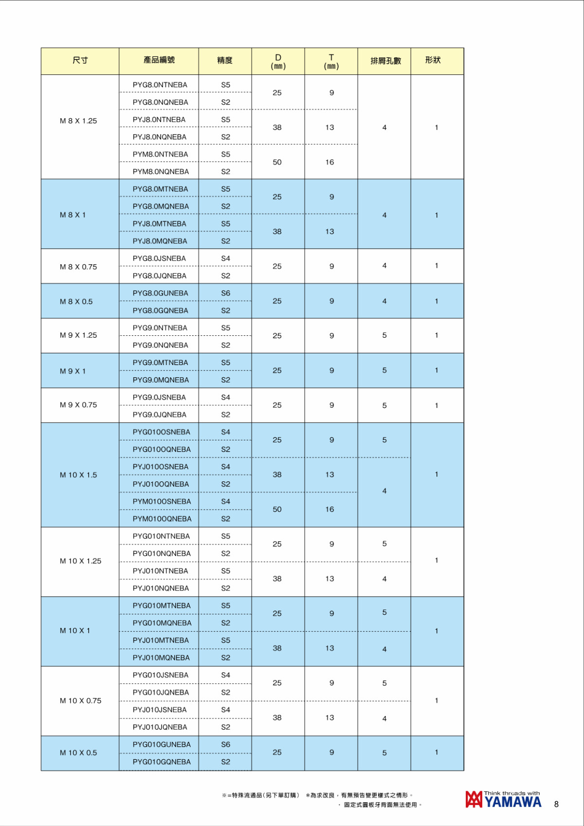 * 先端型固定式圓板牙可依據(jù)客戶需求來(lái)選擇加工的精度,除了標(biāo)準(zhǔn)精度以外的尺寸,需另外下單定制。