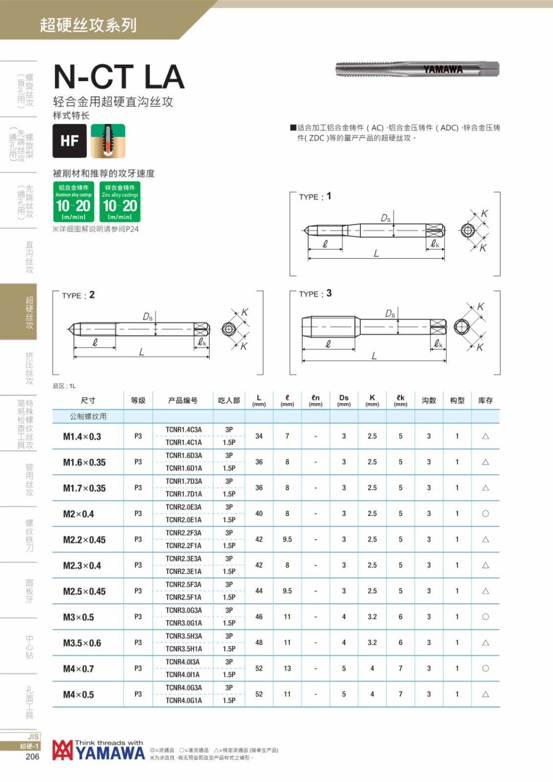 * 適合加工鋁合金鑄件(AC)、鋁合金壓鑄件(ADC)、鋅合金壓鑄件(ZDC)等的量產(chǎn)產(chǎn)品的超硬絲攻。