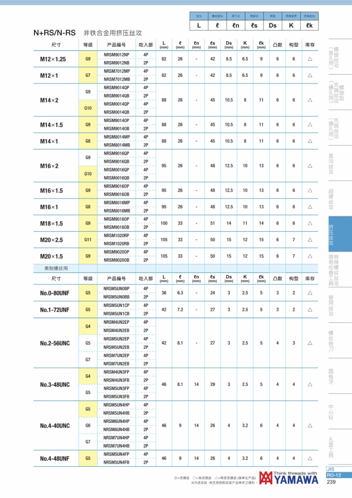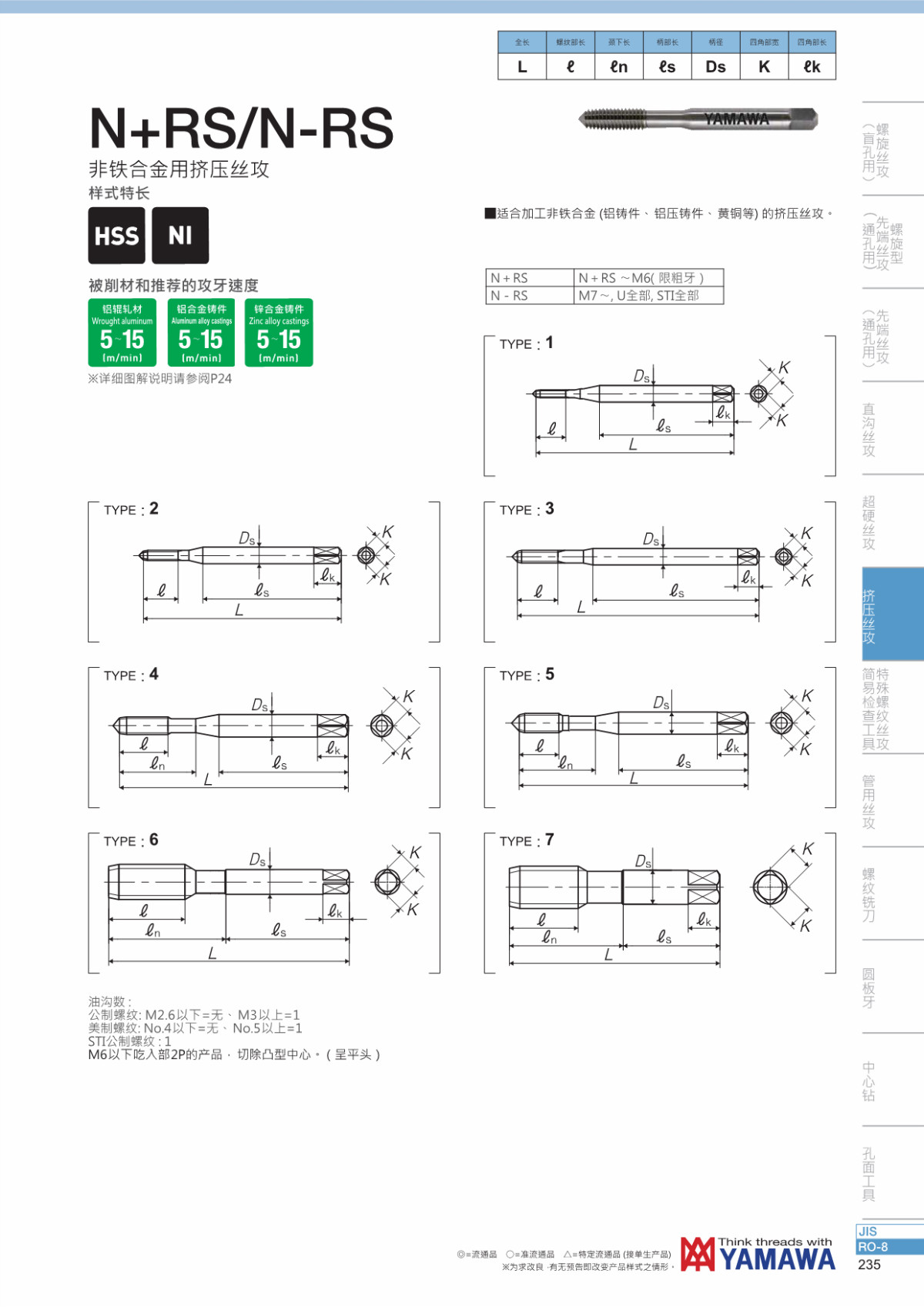 * 適合加工非鐵合金(鋁鑄件、鋁壓鑄件、黃銅等)的擠壓絲攻。
